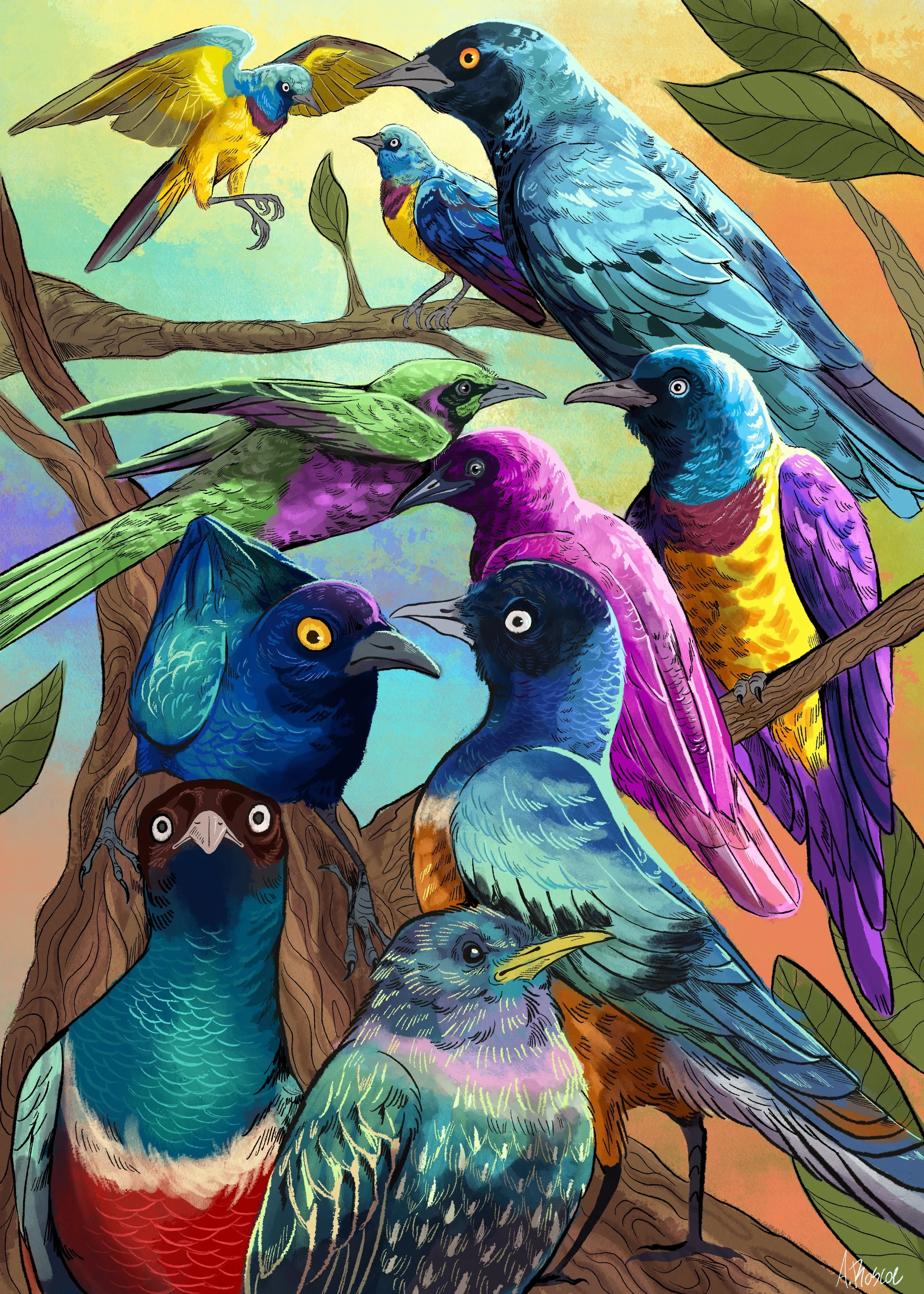 Shop prints › Starlings- A4 Print Image 1 of 1 Starlings- A4 Print Sale Price: $25.00 Original Price: $30.00 Colourful starlings on high quality, glossy paper Add To Cart Added! Colourful starlings on high quality, glossy paper